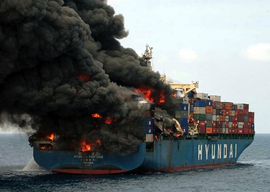 Containerized cargo is particularly difficult to extinguish. Due to the almost hermetic closure, when CO2 is introduced into the tank, it has a difficult time reaching the inside of the container. Therefore, after the introduction of CO2 into the container pool, the burning container is opened.