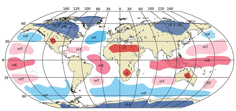An air mass is the name for a large amount of air, whose physical properties (temperature and humidity) are almost uniform at all levels of altitude. Their dimensions vary from 500 to 5000 km and affect the surface up to few million km2. An air mass forms when the atmosphere stands in contact with a large, nearly uniform land or sea surface for a long enough time to acquire the temperature and moisture characteristics of that surface. A warm air mass is the one in which the temperature of the lower layers is greater than the temperature of the surface. In contrast, when it comes to cold air mass, the temperature of these layers is lower than the temperature of its surface. Cold air mass originates from the polar zone, or from cold continents, where it stands out with particularly stable balance, also with low humidity and with very low temperature.
