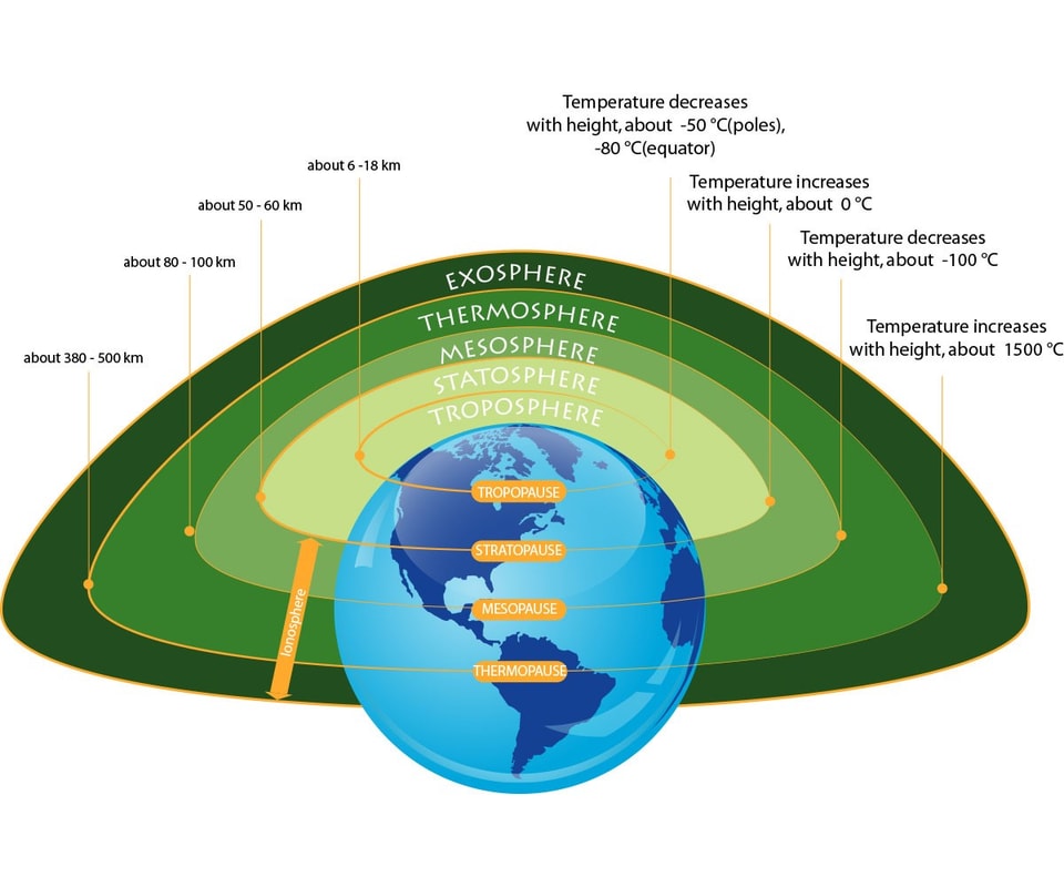 The atmosphere can be divided into individual spheres by various criteria. With regard to the chemical composition of the atmosphere, it can be divided into homosphere and heterosphere.