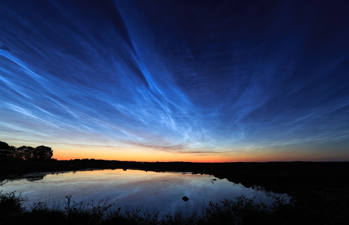 Luminous night clouds - these clouds mostly resemble cirrus and cirrostratus clouds, and they can be seen when the Sun illuminates them below the horizon. They are located in the mesosphere, which means that they are located in heights from 75 to 90 km. It is believed that they are composed of volcanic ash, ice crystals and meteoritic dust. They are mostly perceived in the northern areas.