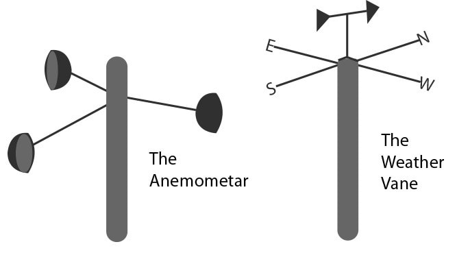Anemometer is used to measure the wind speed and can be electrical or mechanical; permanent or portable. Wind speed can also be measured as the difference between static and dynamic pressure in Prandtl (or Pitot) tubes.