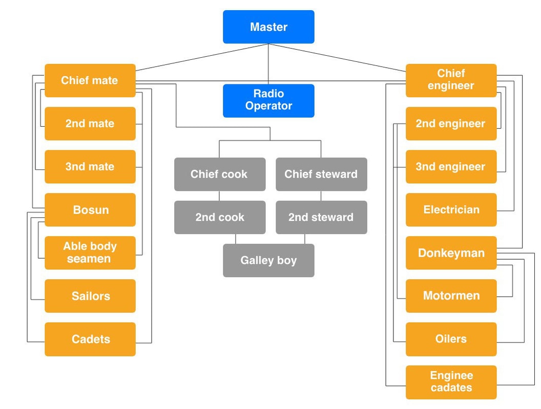 Relationships on board are governed by a hierarchy of commanding and executing roles within the ship. At the top of that hierarchy is the ship's master. Within the hierarchy there are three rounds of command and execution: