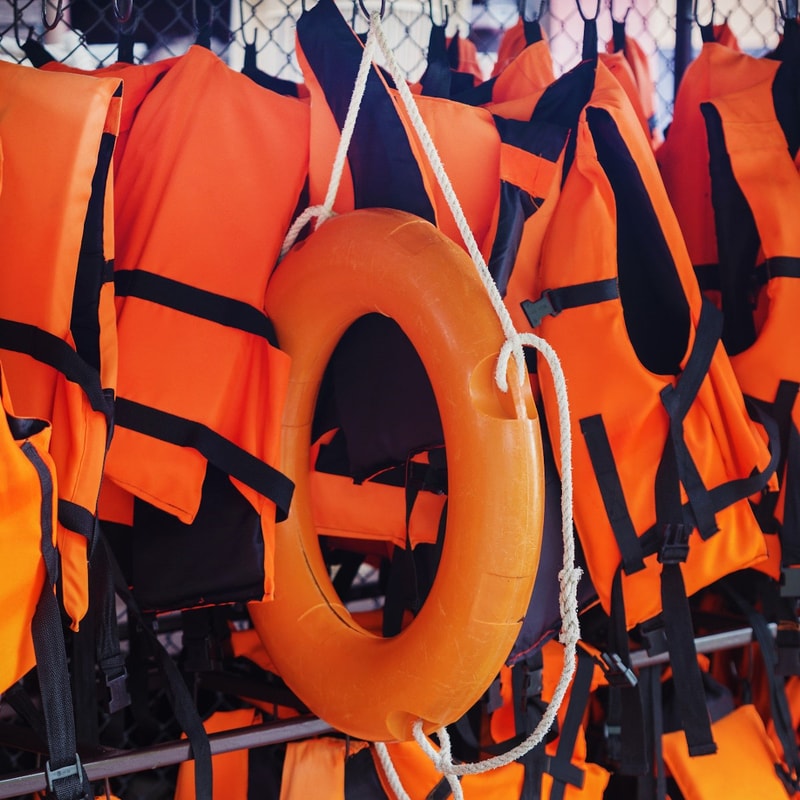 A basic personal safety tool when leaving the ship/falling into the sea. Prevents a person from drowning due to tiredness or fainting. Their buoyancy comes from either solids or blown air. They are orange in colour, resistant to oil and flame effects for up to two seconds. They are equipped with a whistle, light and retroreflective markings. Their buoyancy allows for a passive person's mouth to be 12cm above level in still water. With a vest, one can swim (shorter distances) and move (boarding a lifeboat).